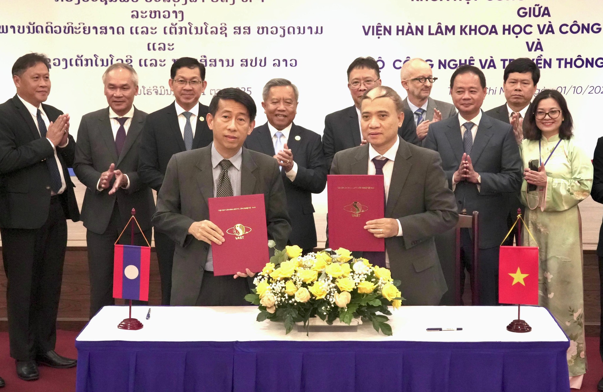 ໂດຍຕອບສະໜອງຕາມການເຊື້ອເຊີນ ຂອງ ທ່ານ ບັນດິດ ສຈ. ເຈົາ ວັນ ມິງ, ປະທານສະພາບັນດິດ ວິທະຍາສາດ ແລະ ເຕັກໂນໂລຊີ ສສ ຫວຽດນາມ, ໃນວັນທີ 01 ຕຸລາ 2025 ທີ່ຜ່ານມາ, ຄະນະຜູ້ແທນ ກະຊວງເຕັກໂນໂລຊີ ແລະ ການສື່ສານ ສປປ ລາວ ນໍາໂດຍ ທ່ານ ບັນດິດ ສຈ. ບໍ່ວຽງຄຳ ວົງດາລາ, ລັດຖະມົນຕີ ກະຊວງເຕັກໂນໂລຊີ ແລະ ການສື່ສານ ສປປ ລາວ ພ້ອມດ້ວຍຄະນະ ໄດ້ເດີນທາງໄປເຄື່ອນໄຫວວຽກວຽກງານ ທີ່ ນະຄອນໂຮຈິມິນ, ສສ ຫວຽດນາມ, ຊຶ່ງໃນໂອກາດດັ່ງກ່າວ ກໍໄດ້ເຂົ້າຮ່ວມກອງປະຊຸມພົບປະສອງຝ່າຍ ຄັ້ງທີ 4. ກອງປະຊຸມຄັ້ງນີ້ ໄດ້ທົບທວນຄືນໝາກຜົນຂອງການຮ່ວມມືໄລຍະຜ່ານມາ, ພ້ອມທັງໄດ້ຕີລາຄາໃນການຮ່ວມມືສອງຝ່າຍມີຜົນສຳເລັດຫຼາຍດ້ານ ເປັນຕົ້ນແມ່ນ ການຮ່ວມມືໃນວຽກງານຫ້ອງທົດລອງ ດ້ານຂໍ້ມູນຂ່າວສານ ແລະ ການສື່ສານ ກ່ຽວກັບໄພພິບັດ (ແຜ່ນດິນໄຫວ ແລະ ອື່ນໆ), ໄດ້ມີການຈັດຝຶກອົບຮົມໄລຍະສັ້ນ ແລະ ການກໍ່ສ້າງບຸກຄະລາກອນໄລຍະຍາວ ເພື່ອສ້າງຄວາມເຂັ້ມແຂງດ້ານຊັບພະຍາກອນມະນຸດ, ສ້າງຄວາມເຂັ້ມແຂງດ້ານການຕີລາຄາ, ກວດສອບ, ປະເມີນການນຳໃຊ້ ເເລະ ການຖ່າຍທອດເຕັກໂນໂລຊີລະດັບສູງ ໃຫ້ແກ່ພະນັກງານຂອງ ກະຊວງເຕັກໂນໂລຊີ ແລະ ການສື່ສານ, ພ້ອມກັນນັ້ນ ຍັງໄດ້ມີການຮ່ວມມືສອງຝ່າຍໃນຂົງເຂດວິທະຍາສາດ, ເຕັກໂນໂລຊີດິຈິຕອນ ແລະ ນະວັດຕະກໍາອື່ນໆ.