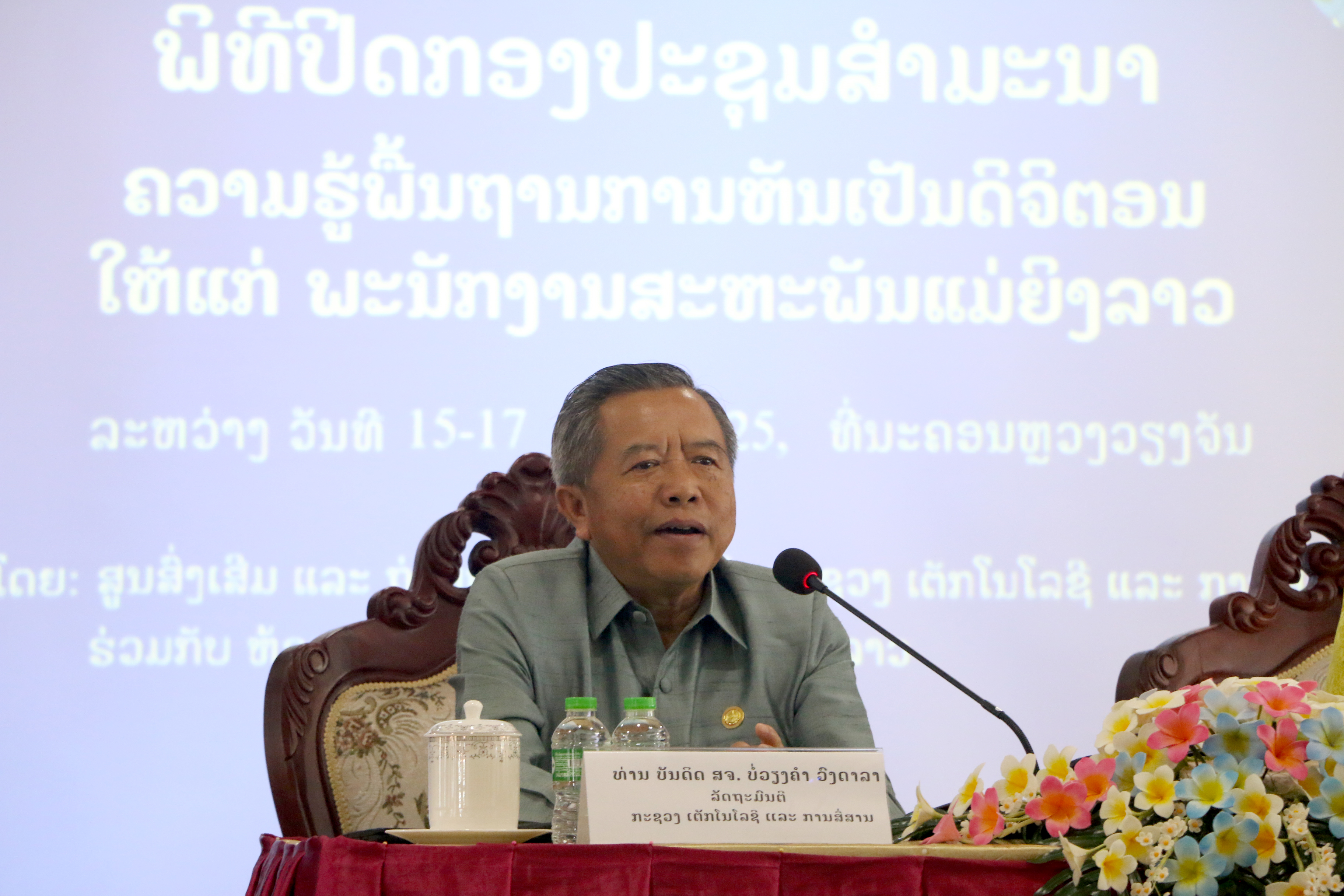 ຕອນທ້າຍຂອງພິທີ ຍັງໄດ້ເປັນກຽດຮັບຟັງຄໍາເຫັນໂອ້ລົມຂອງ ສະຫາຍ ບັນດິດ ສຈ. ບໍ່ວຽງຄໍາ ວົງດາລາ ຊຶ່ງເຕັມໄປດ້ວຍຄວາມໝາຍອັນສໍາຄັນ ໂດຍສະເພາະແມ່ນ ສະຫາຍ ໄດ້ເນັ້ນໜັກໃຫ້ສະມາຊິກພັກ-ພະນັກງານ ທົ່ວຂະແໜງການເຕັກໂນໂລຊີ ແລະ ການສື່ສານ ຈົ່ງພ້ອມກັນຮໍ່າຮຽນເອົາຄຸນງາມຄວາມດີຂອງບັນດານັກຮົບປະຕິວັດ ແລະ ເສີມຂະຫຍາຍມູນເຊື້ອອັນດີງາມດັ່ງກ່າວ ເຂົ້າໃນການຝຶກຝົນຫຼໍ່ຫຼອມຕົນເອງ ແລະ ຜັນຂະຫຍາຍເຂົ້າໃນການປະຕິບັດໜ້າທີ່ວຽກງານຂອງຕົນໃຫ້ໄດ້ຮັບຜົນດີທີ່ສຸດ.