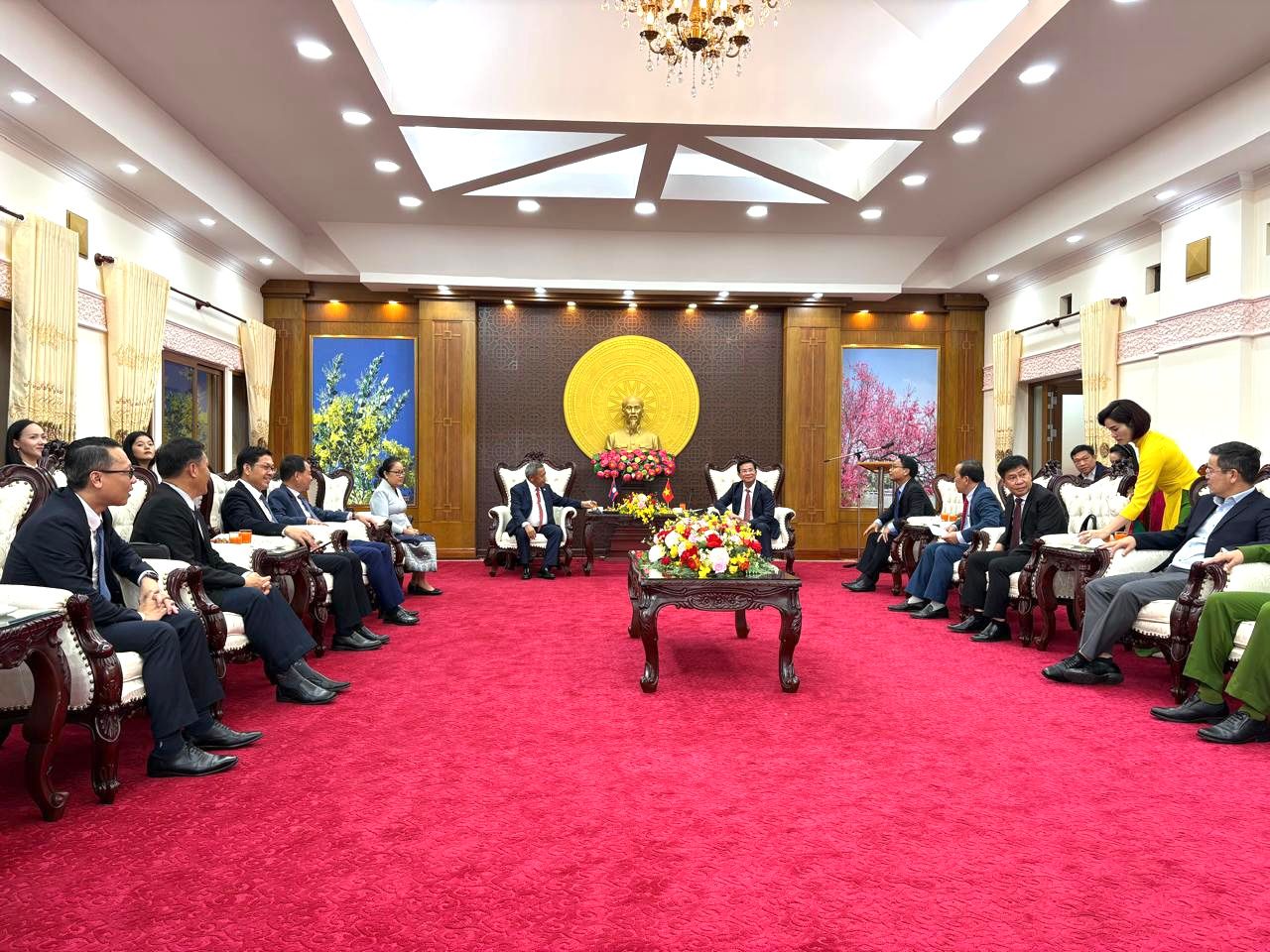 ໂອກາດນີ້, ທ່ານ ໂຮ່ ວັນ ເມີຍ ເຈົ້າແຂວງເລີມດົ່ງໄດ້ກ່າວສະແດງຄວາມຂອບໃຈຕໍ່ການ ເດີນທາງມາຢ້ຽມຢາມ ຂອງທ່ານລັດຖະມົນຕີ ພ້ອມດ້ວຍຄະນະ ໃນຄັ້ງນີ້ ຊຶ່ງມີຄວາມໝາຍສຳຄັນ ແລະ ເປັນອີກວາລະພິເສດໜຶ່ງທີ່ແຂວງເລີມດົ່ງ ໄດ້ຮັບກຽດໃນການຕ້ອນຮັບ ແລະ ນຳສະເໜີການພັດທະນາການຫັນເປັນທັນສະໄໝຂອງແຂວງ ແລະ ໄດ້ສະເໜີໃຫ້ຮັບຮູ້ກ່ຽວກັບສະພາບການນໍາໃຊ້ເຕັກໂນໂລຊີດິຈິຕອນຂອງແຂວງ ຕັ້ງແຕ່ຂັ້ນພື້ນຖານກໍຄືຕາແສງ ຈົນຮອດຂັ້ນແຂວງ ເພື່ອບໍລິການຮັບໃຊ້ປະຊາຊົນໃນຂະແໜງການຕ່າງໆຂອງພາກລັດ, ສະເໜີໃຫ້ເຫັນເຖິງແນວທາງການປະຕິບັດການພັດທະນາຂອງແຂວງຕາມແນວທາງນະໂຍບາຍຂອງສອງ ພັກ-ລັດ ກໍຄືໄດ້ຍົກໃຫ້ເຫັນເຖິງວຽກງານການຮ່ວມມືກັນຂອງ ແຂວງ ເລີມດົ່ງ ຮ່ວມກັນກັບ ບັນດາແຂວງແຮກສ່ຽວ ຂອງ ສປປ ລາວ ກໍຄື ແຂວງ ຈຳປາສັກ ເປັນຕົ້ນ ທີ່ໄດ້ມີການຮ່ວມມືກັນຜ່ານມາ ແລະ ຍັງຄົງສືບຕໍ່ຮ່ວມມືກັນຕໍ່ໄປໃນຕໍ່ໜ້າຍິ່ງໆຂຶ້ນ.