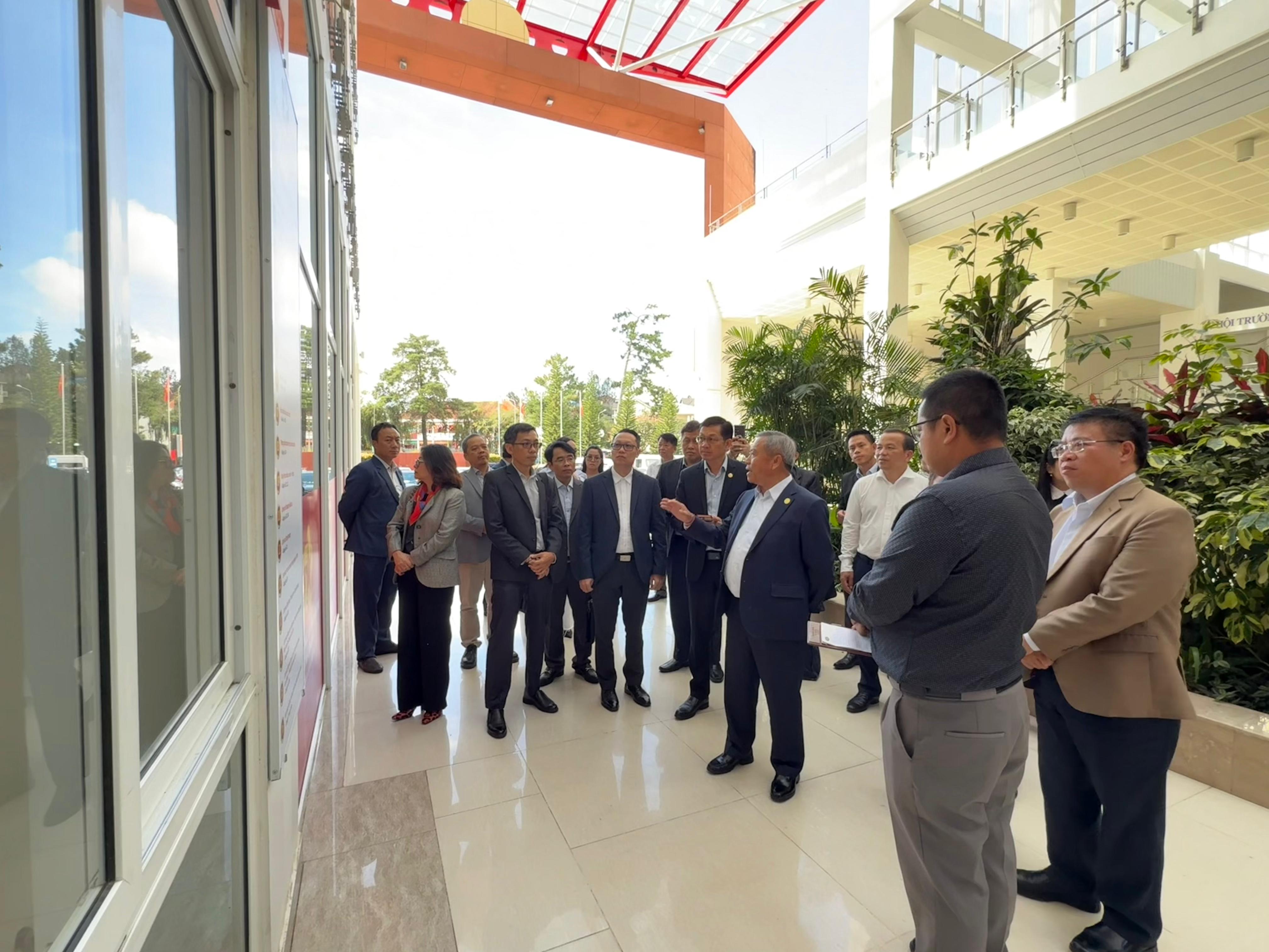 ພ້ອມດຽວກັນນີ້, ຄະນະນຳແຂວງ ເລີມດົ່ງ ກໍໄດ້ນຳພາຄະນະຜູ້ແທນຂອງກະຊວງເຕັກໂນໂລຊີ ແລະ ການສື່ສານ ສປປ ລາວ ໄປຢ້ຽມຢາມສະຖານທີ່ໃຫ້ບໍລິການຕົວຈິງ ຢູ່ທີ່ ສູນໃຫ້ບໍລິການພາກລັດ ຂອງແຂວງເລີມດົ່ງ ແລະ ຂອງຕາແສງ ຊວນ ເຮືອງ, ຢ້ຽມຢາມສະຖາບັນສິ່ງທີ່ມີຊີວິດ ແຂວງເລີມດົ່ງ, ຢ້ຽມຢາມສະຖາບັນຄົ້ນຄວ້ານິວເຄຣຍ ດາລັດ ສສ ຫວຽດນາມ, ຢ້ຽມຢາມເຂດພັດທະນາສີມືແຮງງານແຂວງເລີມດົ່ງ. ການຢ້ຽມຢາມບັນດາສະຖານທີ່ດັ່ງກ່າວນັ້ນ ກໍເພື່ອສຶກສາການນຳໃຊ້ເຕັກໂນໂລຊີ ນຳສະເໜີໃຫ້ເຫັນກ່ຽວກັບ ບັນດາຂະແຫນງການທີ່ແຂວງ ມີການຈັດຕັ້ງປະຕິບັດເປັນຕົ້ນແມ່ນ ໃນທາງການຄົ້ນຄວ້າວິໄຈພັດທະນາພັນພືດ, ການນຳໃຊ້ສູນນິວເຄຣຍເຂົ້າໃນວຽກງານດ້ານວິທະຍາສາດເຕັກໂນໂລຊີ ໃນຫຼາຍຂະແໜງການ, ການຕັດຕໍ່ພັນທຸກໍາພັນພືດ ແລະ ອື່ນໆ ໃນຂົງເຂດວິທະຍາສາດ ເຕັກໂນໂລຊີ ເພື່ອຖອດຖອນບົດຮຽນການນຳໃຊ້ ແລະ ພັດທະນາເຕັກໂນໂລຊີດ້ານດັ່ງກ່າວ. ນອກຈາກນີ້, ກໍໄດ້ລົງຢ້ຽມຢາມ ແລະ ຖອດຖອນບົດຮຽນຢູ່ສະຖາບັນວິທະຍາສາດ ຊີວະພາບ ຂອງ ດາລັດ ຊຶ່ງການຢ້ຽມຢາມຄັ້ງນີ້ເຫັນໄດ້ເຖິງການນຳໃຊ້ເຕັກໂນໂລຊີຊີວະພາບ ແລະ ເຕັກໂນໂລຊີກ່ຽວກັບແສງ ເຂົ້າໃນການພັດທະນາວຽກງານວິທະຍາສາດ ເຕັກໂນໂລຊີ ແລະ ວຽກງານອື່ນໆຢ່າງກວ້າງຂວາງ.