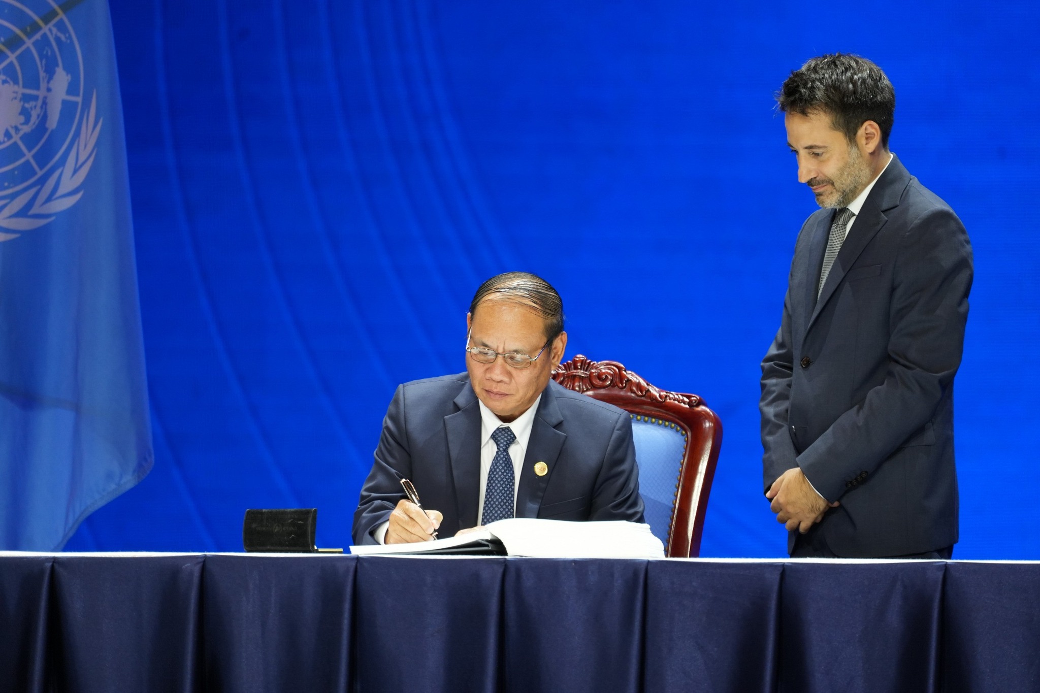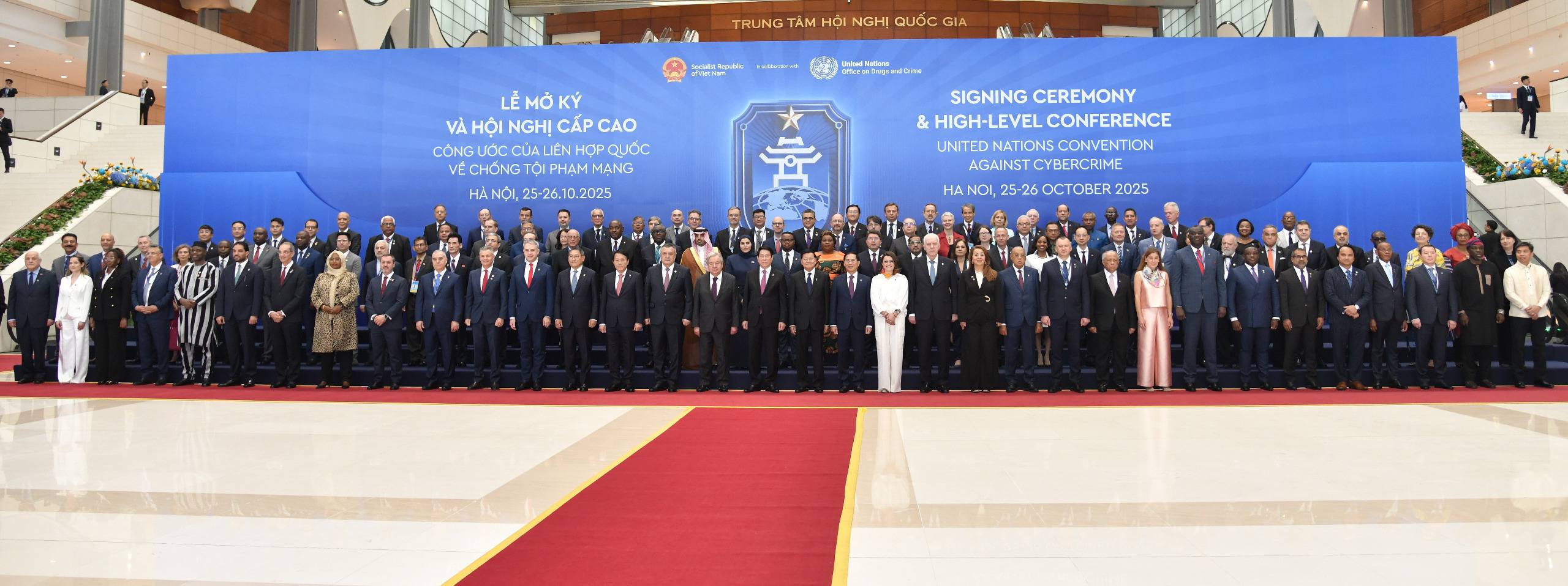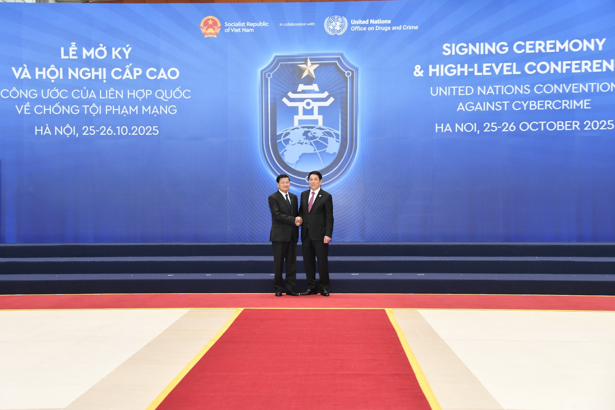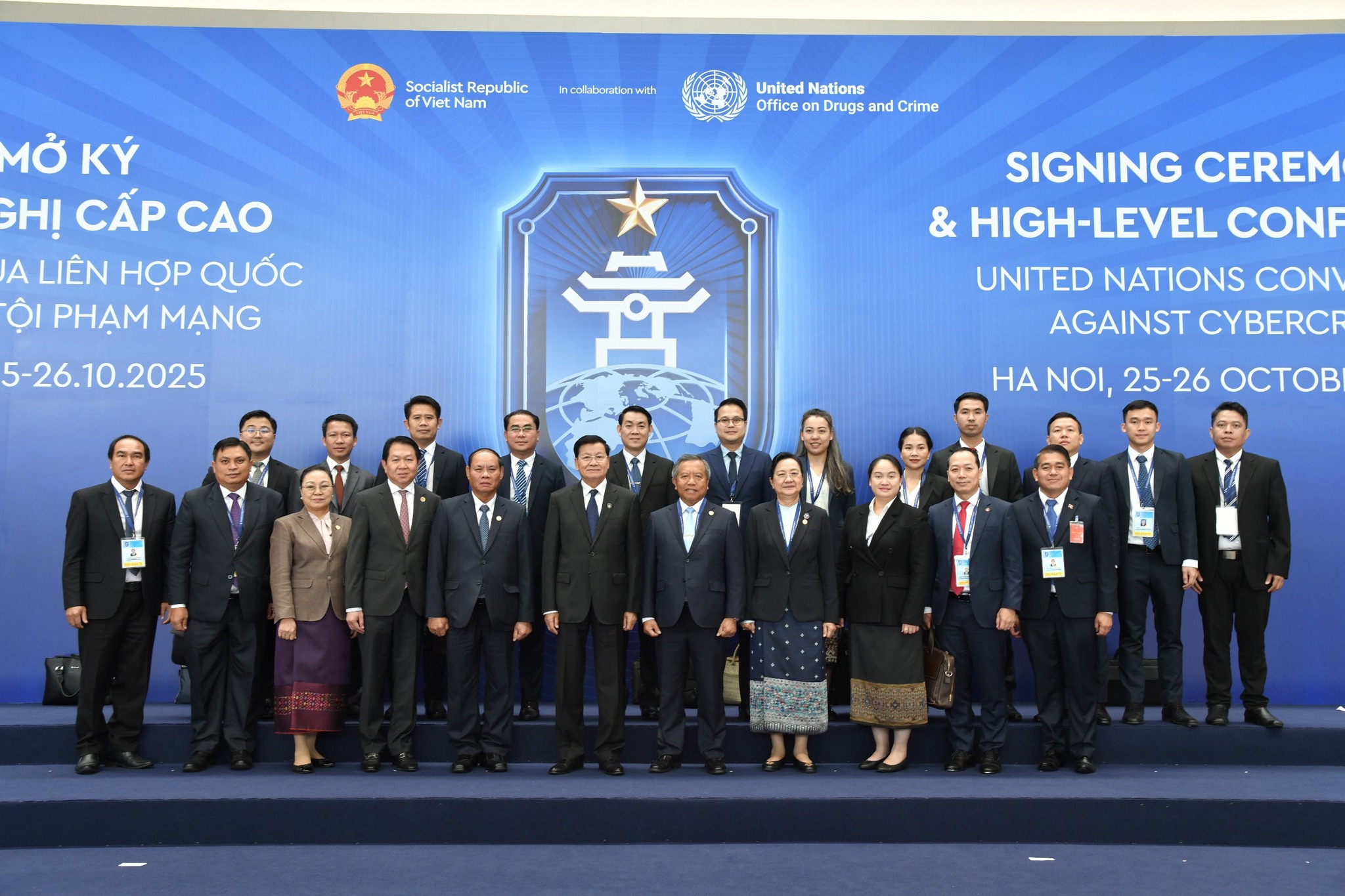 ລະຫວ່າງວັນທີ 25-26 ຕຸລາ 2025 ທີ່ ນະຄອນຫຼວງຮ່າໂນ້ຍ, ສສ ຫວຽດນາມ, ພະນະທ່ານ ທອງລຸນ ສີສຸລິດ, ປະທານປະເທດ ໄດ້ນຳພາຄະນະຜູ້ແທນຂັ້ນສູງຂອງລາວ ເຂົ້າຮ່ວມພິທີລົງນາມສົນທິສັນຍາ ອົງການສະຫະປະຊາຊາດ ວ່າດ້ວຍການຕ້ານອາດຊະຍາກຳທາງໄຊເບີ ແລະ ກອງປະຊຸມສາກົນລະດັບສູງ. ພິທີລົງນາມຈັດຂຶ້ນໂດຍການເປັນປະທານຮ່ວມຂອງທ່ານ ເລືອງ ເກືອງ, ປະທານປະເທດຫວຽດນາມ ແລະ ທ່ານ ອັນໂຕນີໂອ ກູເຕີເຣສ, ເລຂາທິການໃຫຍ່ ອົງການສະຫະປະຊາຊາດ ຫຼື ສປຊ. ປະທານປະເທດຫວຽດນາມ ໄດ້ກ່າວເປີດພິທີ ໂດຍຍົກໃຫ້ເຫັນຄວາມໝາຍສໍາຄັນຂອງສົນທິສັນຍາ ສປຊ ວ່າດ້ວຍການຕ້ານອາດຊະບາກຳທາງໄຊເບີ, ເປັນການສະແດງໃຫ້ເຫັນເຖິງຄວາມສາມັກຄີເປັນເອກະພາບຂອງບັນດາປະເທດສະມາຊິກ ອົງການ ສປຊ ໃນການສ້າງສະພາບແວດລ້ອມທາງໄຊເບີ ທີ່ມີຄວາມປອດໄພ, ມີສະຖຽນລະພາບ ແລະ ຮັບໃຊ້ຜົນປະໂຫຍດດ້ານການພັດທະນາທີ່ຍືນຍົງ. ການຮັກສາຄວາມປອດໄພທາງໄຊເບີ ປຽບເໝືອນການປົກປ້ອງອຳນາດອະທິປະໄຕ ແລະ ຜົນປະໂຫຍດແຫ່ງຊາດ ທີ່ຕິດພັນໂດຍກົງກັບການພັດທະນາແບບຍືນຍົງ. ສະນັ້ນ, ຈຶ່ງຮຽກຮ້ອງໃຫ້ມີການຄຸ້ມຄອງທີ່ດີ, ເປັນລະບົບ, ມີຄວາມປອດໄພ ແລະ ສາມາດເຊື່ອຖືໄດ້. ພິທີລົງນາມຈັດຂຶ້ນຢູາຫວຽດນາມຄັ້ງນີ້ ມີຫຼາຍກວ່າ 110 ປະເທດ ເຂົ້າຮ່ວມ, ໃນໂອກາດນີ້ ມີ 63 ປະເທດ ແລະ ສະຫະພາບເອີຣົບ ໄດ້ຮ່ວມລົງນາມໃນສົນທິສັນຍາດັ່ງກ່າວ, ເປັນການສະແດງໃຫ້ເຫັນເຖິງຄວາມມຸ່ງມາດປາດຖະໜາຂອງວົງຄະນະຍາດສາກົນ ໃນການຮ່ວມມືກັນ ເພື່ອສະກັດກັ້ນ ແລະ ຕ້ານອາດຊະຍາກໍາທາງໄຊເບີ.