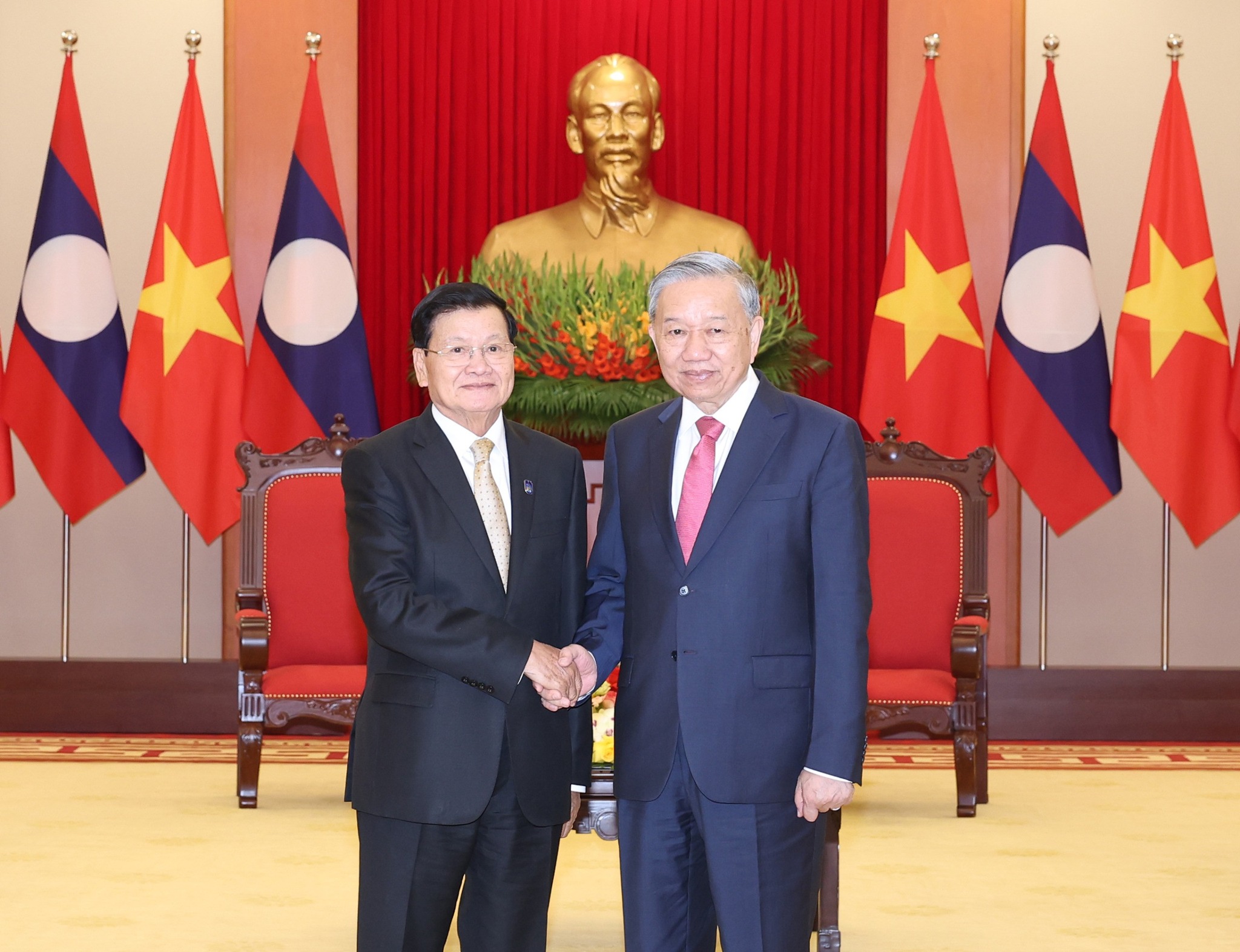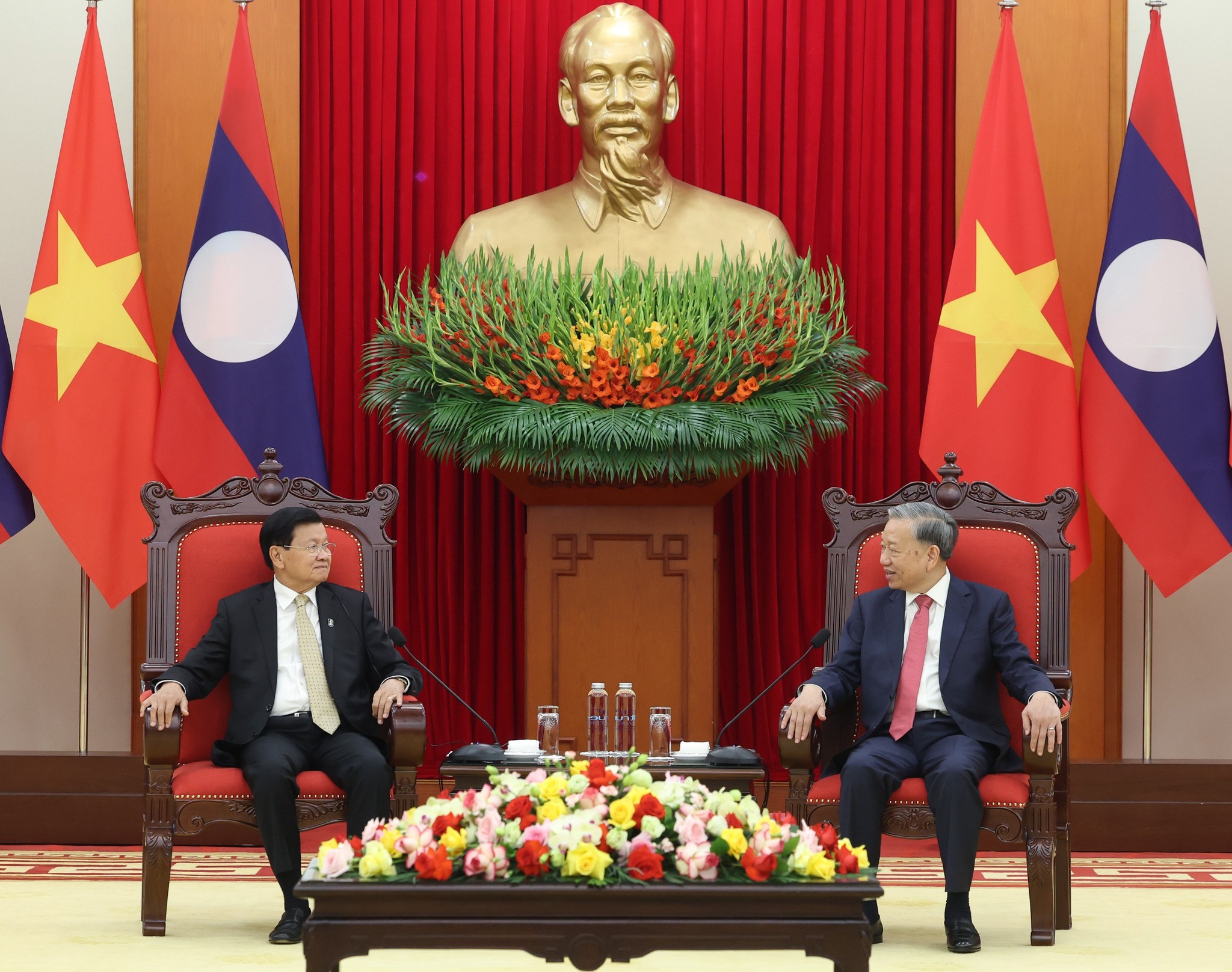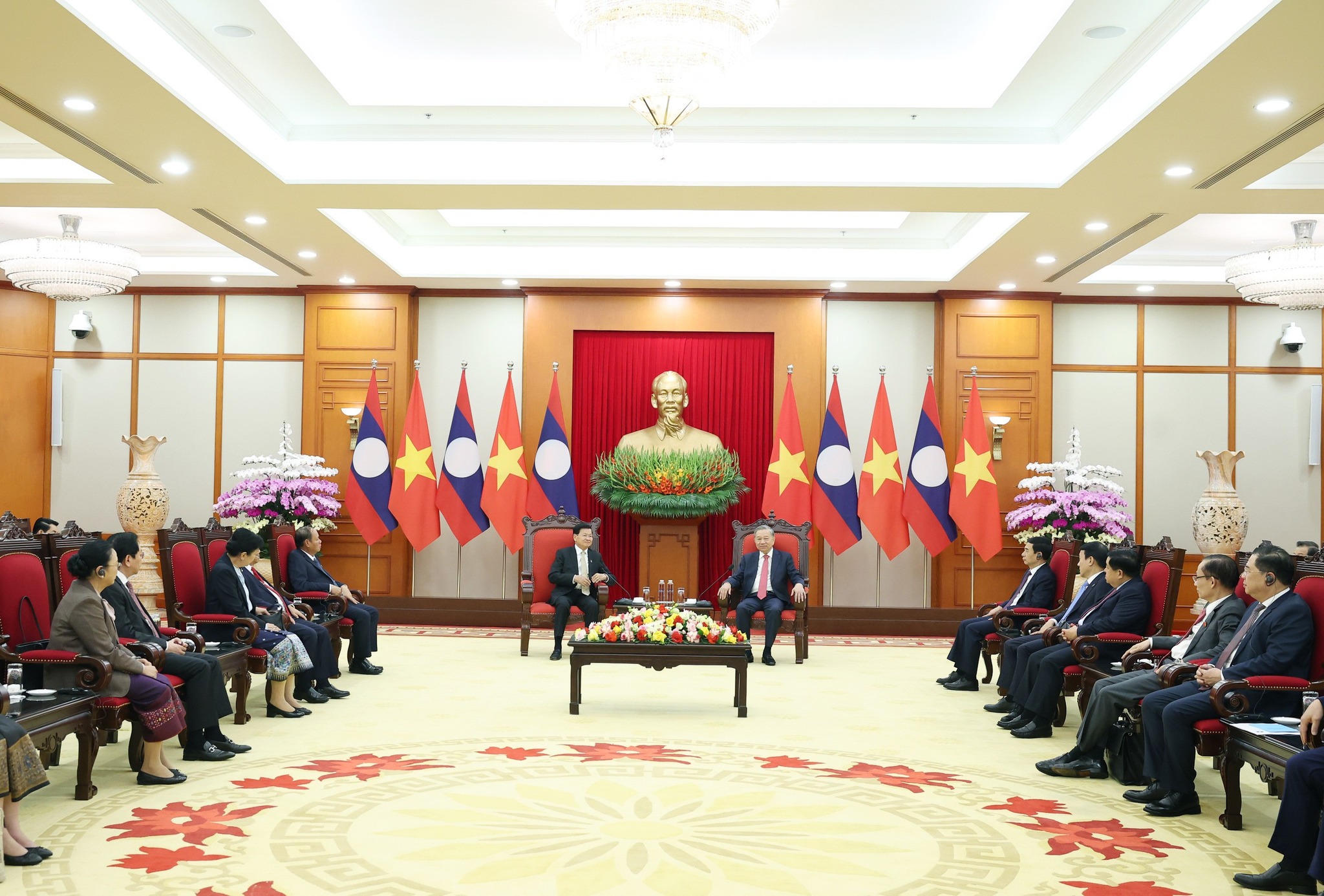 ນອກຈາກເຂົ້າຮ່ວມພິທີລົງນາມ ແລະ ກອງປະຊຸມລະດັບສູງແລ້ວ, ພະນະທ່ານ ທອງລຸນ ສີສຸລິດ, ເລຂາທິການໃຫຍ່, ປະທານປະເທດ ຍັງໄດ້ພົບປະກັບ ພະນະທ່ານ ໂຕ ເລິມ, ເລຂາທິການໃຫຍ່ຄະນະບໍລິຫານງານສູນກາງພັກກອມມູນິດຫວຽດນາມ ເພື່ອສືບຕໍ່ເສີມຂະຫຍາຍ ແລະ ຮັດແໜ້ນສາຍພົວພັນມິດຕະພາບ, ຄວາມສາມັກຄີພິເສດ ແລະ ການຮ່ວມມືຮອບດ້ານ ລະຫວ່າງ ສອງພັກ, ສອງລັດ ແລະ ປະຊາຊົນສອງຊາດ ລາວ ແລະ ຫວຽດນາມ ທີ່ມີມູນເຊື້ອ ໃຫ້ນັບມື້ນັບເຂົ້າສູ່ລວງເລິກ ແລະ ແຕກດອກອອກຜົນຍິ່ງຂຶ້ນ. ພ້ອມນີ້, ການນຳຂັ້ນສູງຂອງລາວ ຍັງໄດ້ພົບປະສອງຝ່າຍ ກັບ ບັນດາຜູ້ນໍາຂອງບາງປະເທດທີ່ເຂົ້າຮ່ວມພິທີດັ່ງກ່າວ ເພື່ອແລກປ່ຽນບົດຮຽນກ່ຽວກັບການຈັດຕັ້ງປະຕິບັດວຽກງານຮັບປະກັນຄວາມປອດໄພທາງໄຊເບີ.
