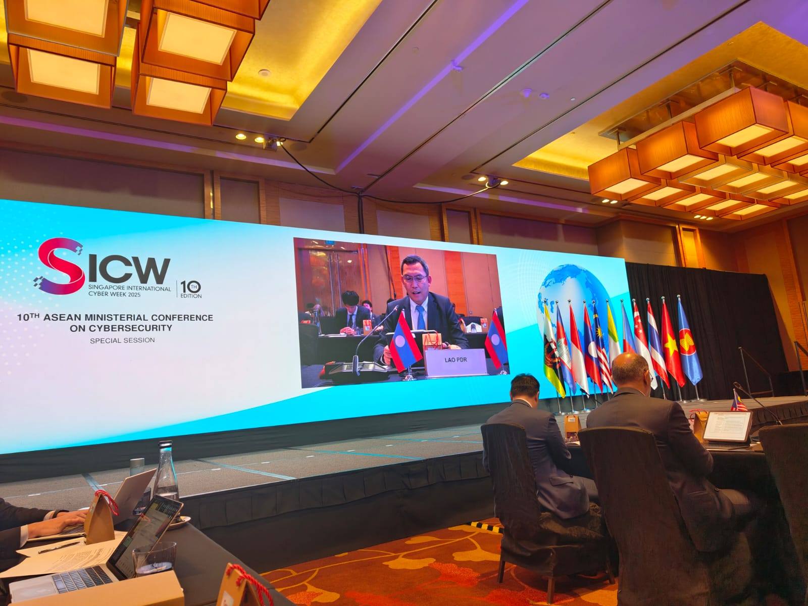 ໃນລະຫວ່າງວັນທີ 20-23 ຕຸລາ 2025 ທີ່ຜ່ານມາ, ທ່ານ ແກ້ວວີສຸກ ໂສລະພົມ, ຮອງ ລັດຖະມົນຕີ ກະຊວງເຕັກໂນໂລຊີ ແລະ ການສື່ສານ ໄດ້ນຳພາຄະນະ ເຂົ້າຮ່ວມງານສັບປະດາສາກົນດ້ານໄຊເບີ (Singapore International Cyber Week (SICW)) ແລະ ກອງປະຊຸມລັດຖະມົນຕີອາຊຽນດ້ານຄວາມປອດໄພໄຊເບີ (ASEAN Ministerial Conference on Cybersecurity (AMCC)) ຄັ້ງທີ 10 ທີ່ປະເທດ ສິງກະໂປ, ຈັດຂຶ້ນໂດຍ ອົງການຄວາມປອດໄພທາງໄຊເບີ ຂອງສິງກະໂປ (Cyber Security Agency of Singapore) ພາຍໃຕ້ຫົວຂໍ້ແນວຄິດ: “ການກໍານົດຍຸກຕໍ່ໄປຂອງຄວາມປອດໄພໄຊເບີໂລກ Shaping the Next Era of Global Cybersecurity”, ຊຶ່ງງານດັ່ງກ່າວປະກອບມີຫຼາຍກິດຈະກຳເປັນຕົ້ນແມ່ນ ກອງປະຊຸມທາງດ້ານວິຊາການ, ການເສວະນາວຽກງານຄວາມປອດໄພໄຊເບີ, ການວາງສະແດງເຕັກໂນໂລຊີດິຈິຕອນ, ການແຂ່ງຂັນເຈາະລະບົບ, ການຝືກຊ້ອມແກ້ໄຂສຸກເສີນທາງໄຊເບີ ແລະ ກິດຈະກຳອື່ນໆປີ່ນອ້ອມ, ພິເສດແມ່ນກອງປະຊຸມ AMCC ໂດຍການເປັນປະທານຂອງ ທ່ານ ນາງ Joesphine Teo, ລັດຖະມົນຕີ ກະຊວງຂໍ້ມູນຂ່າວສານ ແລະ ການສື່ສານ ແລະ ລັດຖະມົນຕີທີ່ຮັບຜິດຊອບດ້ານຄວາມປອດໄພທາງໄຊເບີ ຂອງສິງກະໂປ, ມີຜູ້ເຂົ້າຮ່ວມຈາກບັນດາລັດຖະມົນຕີດ້ານໄອຊີທີ ແລະ ໄຊເບີອາຊຽນລວມທັງເລຂາທິການໃຫຍ່ອາຊຽນ, ອົງການຈັດຕັ້ງສາກົນ, ຜູ້ນຳຈາກບັນດາອຸດສະຫະກຳ, ສະຖາບັນການສຶກສາ ແລະ ອົງການຈັດຕັ້ງທີ່ບໍ່ຂຶ້ນກັບລັດຖະບານ.