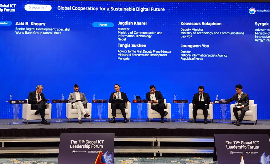 ໃນລະຫວ່າງວັນທີ 10-13 ພະຈິກ 2025 ທີ່ຜ່ານມາ, ທ່ານ ແກ້ວວີສຸກ ໂສລະພົມ, ຮອງລັດຖະມົນຕີ ກະຊວງເຕັກໂນໂລຊີ ແລະ ການສື່ສານ ພ້ອມດ້ວຍຄະນະ ໄດ້ເຂົ້າຮ່ວມກອງປະຊຸມສຸດຍອດຜູ້ນຳ ໄອຊີທີ ສາກົນ ຄັ້ງທີ 11 ພາຍໃຕ້ຫົວຂໍ້: “Digital and AI Transformation Achieving the SDGs and a Sustainable Global Future” ຊຶ່ງໄດ້ຈັດຂຶ້ນທີ່ ສ.ເກົາຫຼີ ໂດຍ ກະຊວງວິທະຍາສາດ ICT ແລະ ອົງການຂໍ້ມູນຂ່າວສານແຫ່ງຊາດ (NIA) ສ.ເກົາຫຼີ, ເພື່ອປຶກສາຫາລື ແລະ ແລກປ່ຽນບົດຮຽນຂອງການນຳຂັ້ນສູງ ກ່ຽວກັບວຽກງານການຫັນເປັນດິຈິຕອນ ໂດຍການນຳໃຊ້ລະບົບປັນຍາປະດິດ (AI) ເຂົ້າໃນການບໍລິຫານ ແລະ ບໍລິການລັດ ສູ່ສັງຄົມທີ່ຍືນຍົງ.