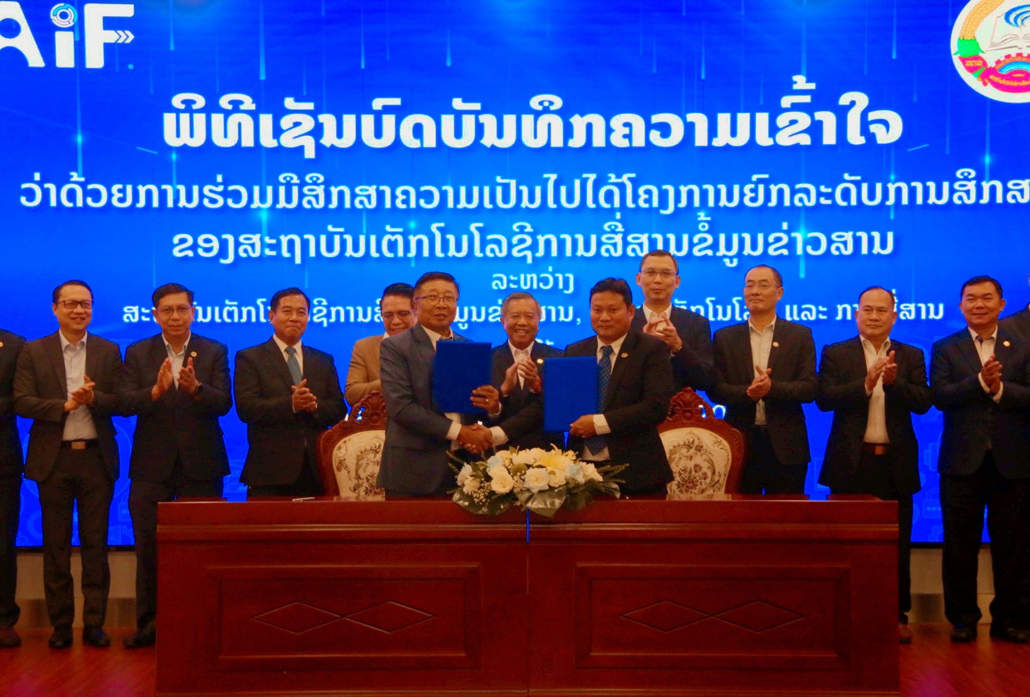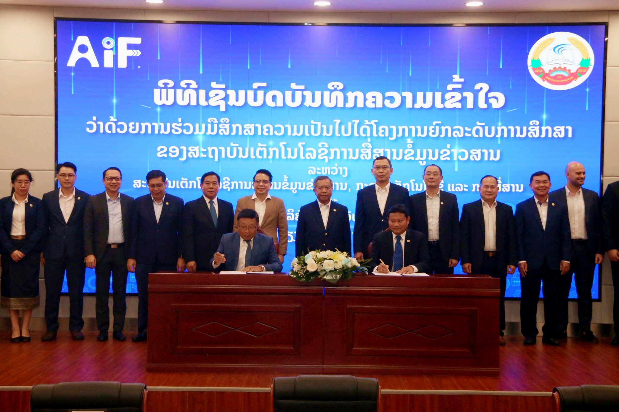 ສະຖາບັນເຕັກໂນໂລຊີການສື່ສານຂໍ້ມູນຂ່າວສານ ຮ່ວມກັບ ບໍລິສັດ ເອໄອເອັຟ ຈຳກັດ ລົງນາມເຊັນບົດບັນທຶກຄວາມເຂົ້າໃຈ ວ່າດ້ວຍ ການສຶກສາຄວາມເປັນໄປໄດ້ ໂຄງການຍົກລະດັບການສຶກສາ ເພື່ອຜັນຂະຫຍາຍມະຕິກອງປະຊຸມໃຫຍ່ຂອງພັກປະຊາຊົນປະຕິວັດລາວ, ແຜນພັດທະນາເສດຖະກິດ-ສັງຄົມແຫ່ງຊາດ 5 ປີ ຄັ້ງທີ IX ດ້ວຍຄວາມເຄັ່ງຮ້ອນ ແລະ ສຸມທຸກກໍາລັງວັງຊາ ແລະ ທ່າແຮງຂອງປະເທດ ເພື່ອແກ້ໄຂຄວາມຫຍຸ້ງຍາກ ທາງດ້ານເສດຖະກິດ-ການເງິນ, ພ້ອມນີ້ກໍພວມຢູ່ໃນໄລຍະກະກຽມການສະເຫຼີມສະຫຼອງ 3 ວັນປະຫວັດຊາດ (ວັນຄາຍວັນເກີດປະທານໄກສອນ ພົມວິຫານຄົບ ຮອບ 105 ປີ, ວັນສ້າງຕັ້ງ ກອງທັບປະຊາຊົນລາວຄົບຮອບ 76 ປີ ແລະ ວັນສາຖາປະນາ ສະທາລະນະລັດ ປະຊາທິປະໄຕ ປະຊາ ຊົນລາວ ຄົບຮອບ 50 ປີ) ເພື່ອໃຫ້ເປັນຂະບວນການ ຝົດຝື້ນ ແລະ ມີເນື້ອໃນເລີກເຊິ່ງ.