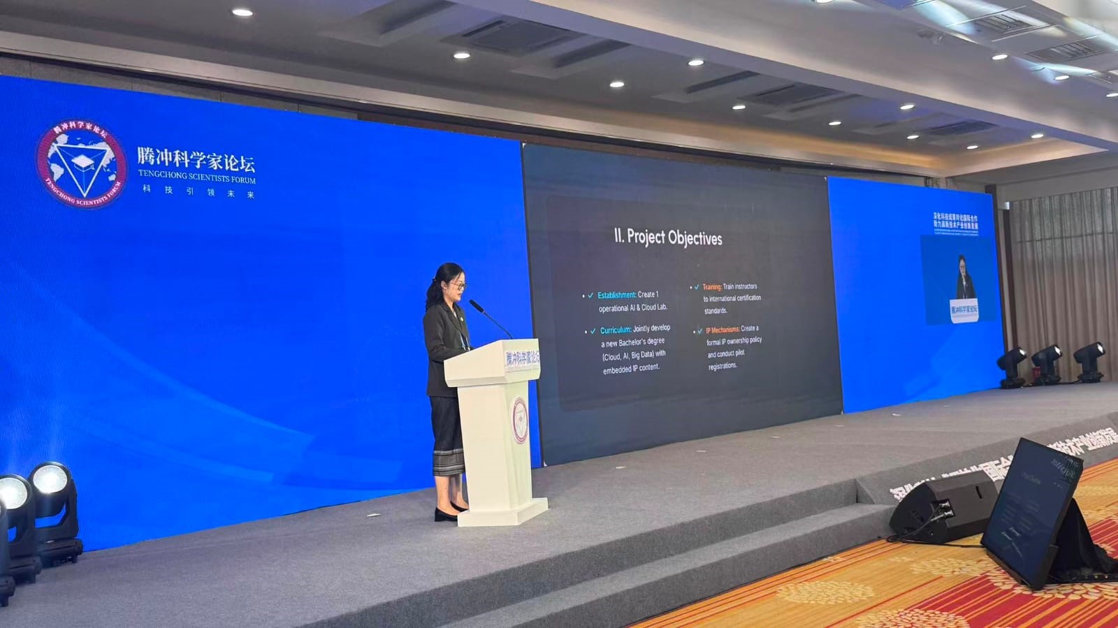 ໃນລະຫວ່າງວັນທີ 05-07 ທັນວາ 2025 ໂດຍການຕອບຮັບການເຊີນຂອງຄະນະກໍາມະການຮັບຜິດຊອບ ຈັດກອງປະຊຸມລະດັບສູງນັກວິທະຍາສາດເຖິງຈົງ ປະຈຳປີ 2025 (Technology Scientists Forum 2025) ພາຍໃຕ້ຄໍາຂວັນ: “ວິທະຍາສາດປັນຍາປະດິດປ່ຽນແປງໂລກ (Science - AI Changing the world)” ຈັດຂື້ນທີ່ເຂດເຖິງຈົງ, ແຂວງຄຸນໝິງ, ສປ ຈີນ. ຊຶ່ງເປັນການຜັນຂະຫຍາຍຈາກທິດຊີ້ນໍາຂອງ ປະທານ ສີ ຈີ້ງເຜິ້ງ ເລຂາທິການໃຫຍ່ພັກຄອມມູນິດ ສປ ຈີນ. ເປັນກອງປະຊຸມທີ່ເຊື້ອເຊີນຜູ້ນໍາລະດັບສູງດ້ານນະວັດຕະກໍາ, ເຕັກໂນໂລຊີ, ການສຶກສາ, ນັກວິທະຍາສາດ ແລະ ພາກລັດຖະບານ-ເອກະຊົນ-ຜູ້ລົງທຶນ ເຂົ້າຮ່ວມຫຼາຍກວ່າ 5000 ຄົນ ພາຍໃນ ສປ.ຈີນ, ປະເທດຂົງເຂດອາຊີໃຕ້ ແລະ ອາຊີຕາມເວັນອອກສຽງໃຕ້ ເປັນປະຈໍາທຸກປີ ໂດຍແຕ່ ປີ 2022 ເປັນຕົ້ນມາ ເປັນເວທີໃນການນໍາສະເໜີຜົນງານການຄົ້ນຄ້ວາວິທະຍາສາດທີ່ອອກຮັບໃຊ້ສັງຄົມລະດັບໂລກ, ຮັບລາງວັນໂນໂບ, ການແລກປ່ຽນບົດຮຽນດ້ານວິຊາການ ແລະ ສ້າງເຄືອຂ່າຍສຶບຕໍ່ພັດທະນາລົງເລິກຮ່ວມມກັນໃນຕໍ່ໜ້າ.