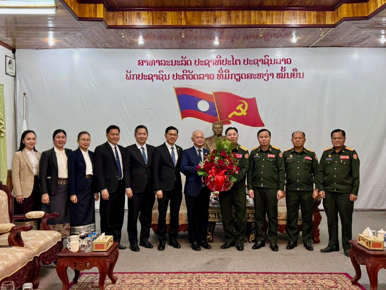 ໃນຕອນບ່າຍຂອງວັນທີ 23 ມັງກອນ 2026, ທີ່ວິທະຍາຄານປ້ອງກັນຊາດ ໄກສອນ ພົມວິຫານ, ຄະນະພັກ-ຄະນະນໍາ ກະຊວງເຕັກໂນໂລຊີ ແລະ ການສື່ສານ ນໍາໂດຍ ທ່ານ ໄຊລືຊາ ອິນສີຊຽງໃໝ່ ຄະນະປະຈໍາພັກ, ປະທານຄະນະກວດກາພັກ, ຮອງລັດຖະມົນຕີ, ທ່ານ ໄຊຊະນະ ສິດທິພອນ ຄະນະປະຈໍາພັກ, ຮອງລັດຖະມົນຕີ ພ້ອມດ້ວຍຄະນະ ໄດ້ເຂົ້າພົບປະອວຍພອນ ຄະນະພັກ-ຄະນະບັນຊາ ວິທະຍາຄານປ້ອງກັນຊາດ ໄກສອນ ພົມວິຫານ, ກອງຊວງປ້ອງກັນປະເທດ ເນື່ອງໃນໂອກາດ ວັນສ້າງຕັ້ງກອງທັບປະຊາຊົນລາວ ຄົບຮອບ 77 ປີ ໂດຍໃຫ້ການຕ້ອນຮັບຂອງ ທ່ານ ພົ.ຕ ພັນແສງ ບຸນພັນ, ຄະນະປະຈໍາພັກ ກະຊວງປ້ອງກັນປະເທດ, ຫົວໜ້າການເມືອງ ວິທະຍາຄານປ້ອງກັນຊາດ ໄກສອນ ພົມວິຫານ ພ້ອມດ້ວຍຄະນະ.