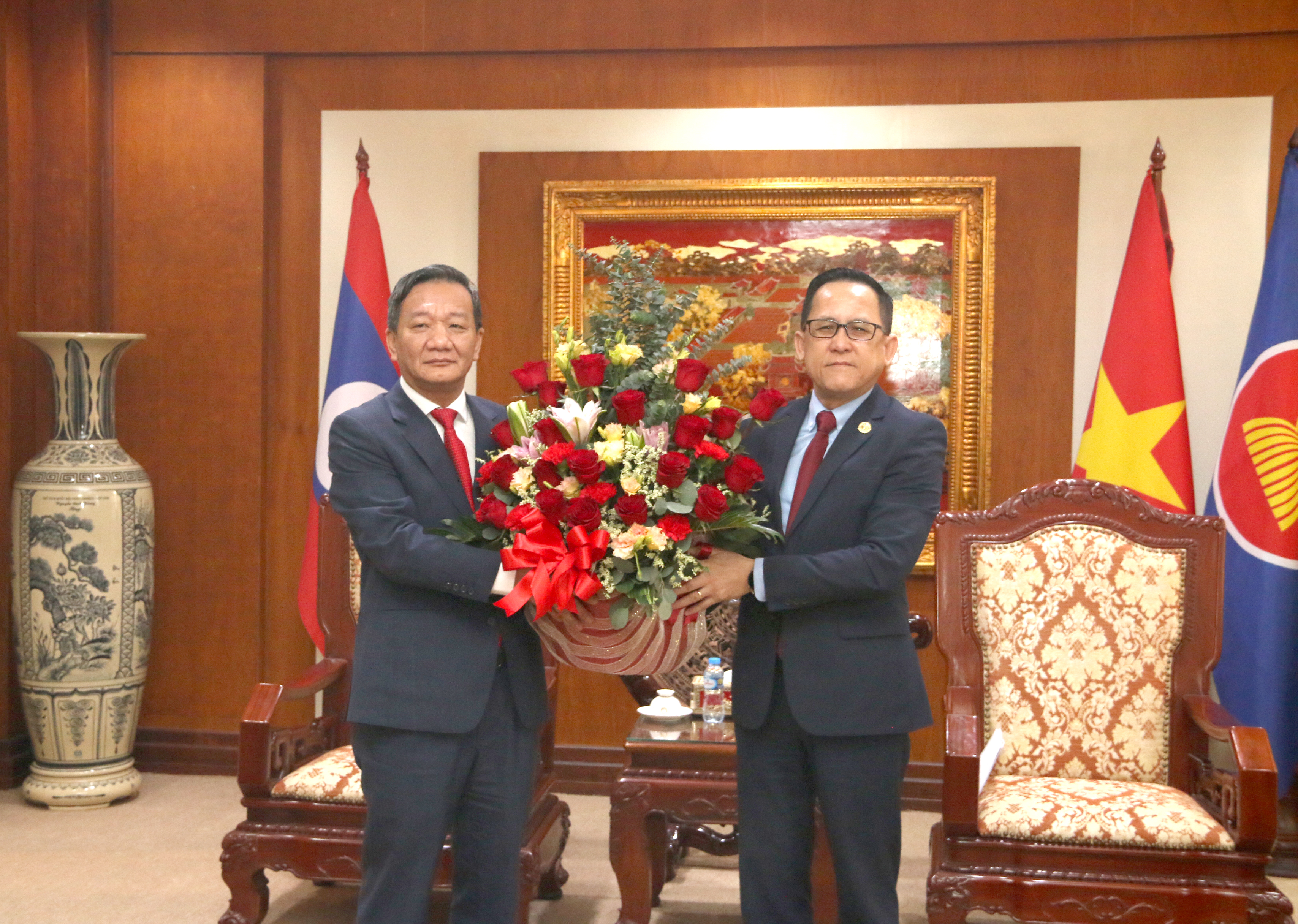 ຄະນະນຳ ກຕສ ເຂົ້າອວຍພອນວັນປີໃໝ່ ປະຈໍາຊາດ ຂອງ ສາທາລະນະລັດສັງຄົມນິຍົມ ຫວຽດນາມ