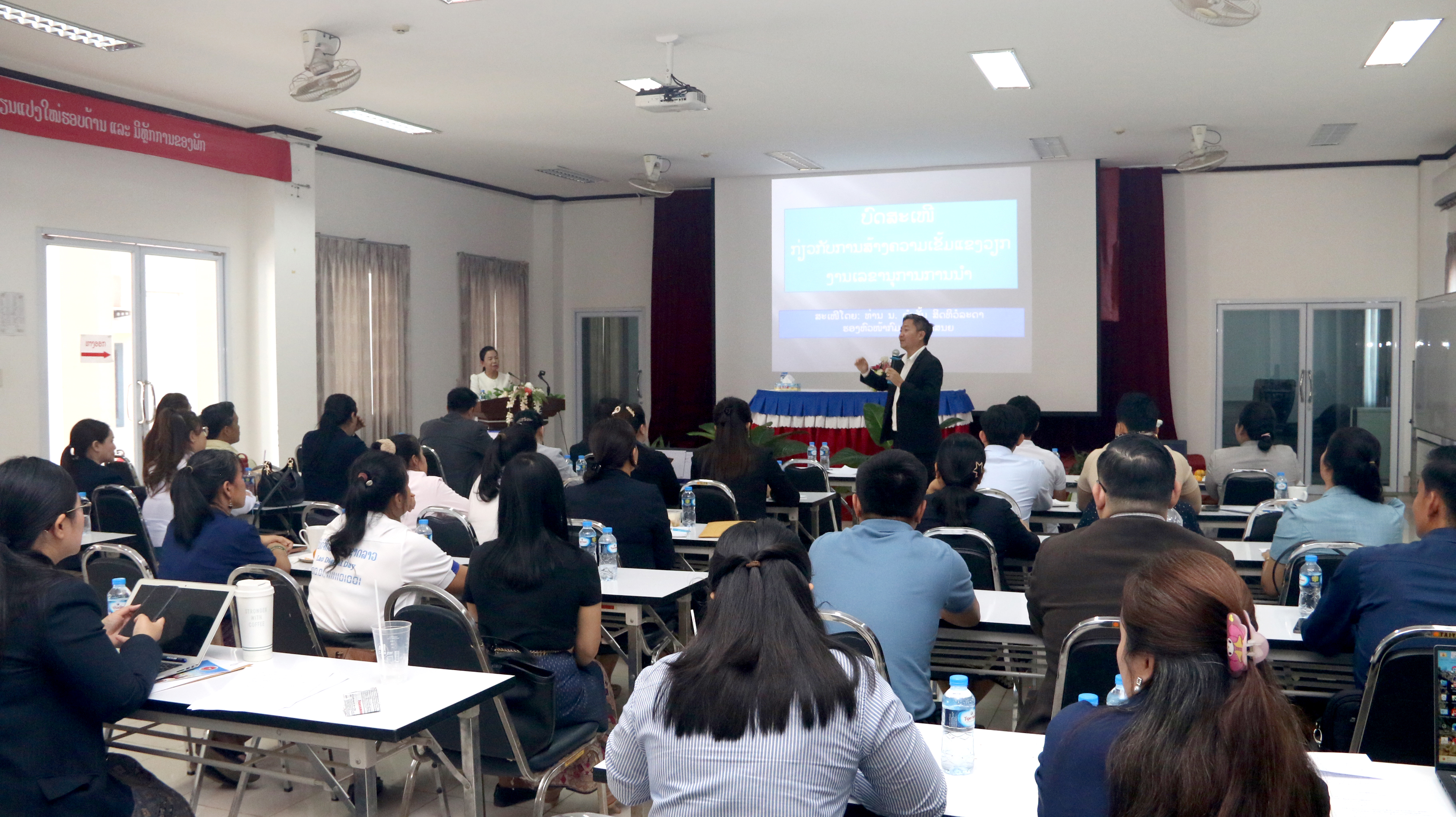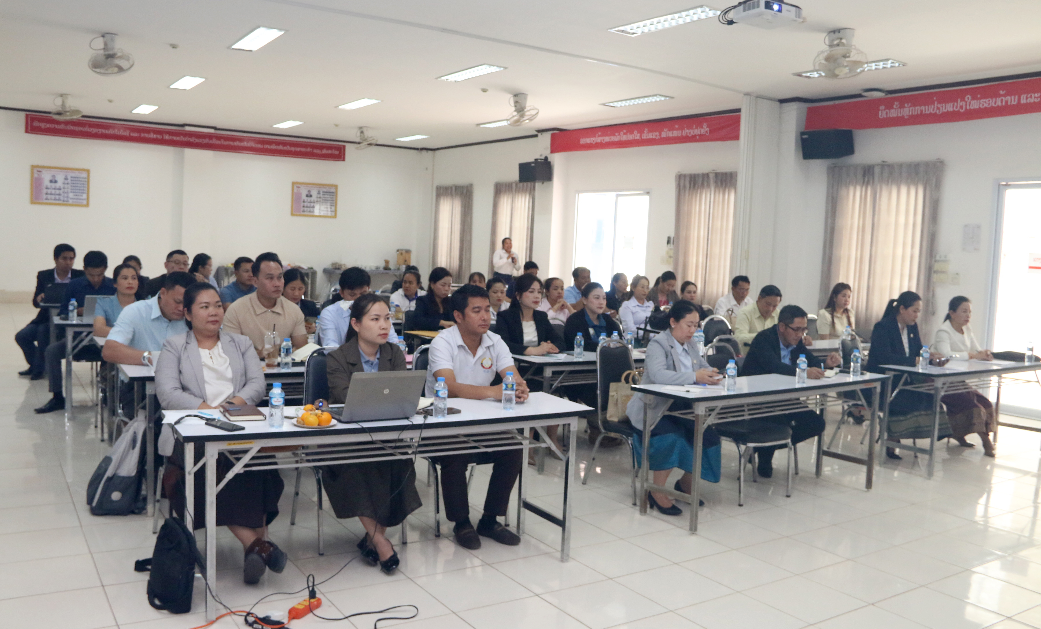 ການຝຶກອົບຮົມຄັ້ງນີ້, ແມ່ນເພື່ອແນ່ໃສ່ໃຫ້ພະນັກງານ ຜູ້ທີ່ຮັບຜິດຊອບວຽກງານການເປັນເສນາທິການໃຫ້ແກ່ຄະນະນຳ ກໍຄືວຽກງານເລຂານຸການ, ຄົ້ນຄ້ວາສັງລວມ ໂດຍສະເພາະການພົວພັນປະສານງານ ກັບບັນດາພາກສ່ວນຕ່າງໆທັງພາຍໃນ ແລະ ພາຍນອກ, ການກະກຽມບັນດາເອກະສານຕ່າງໆ, ບັນດາບົດສະຫຼຸບ, ບົດຄໍາເຫັນ ແລະ ເອກະສານອື່ນໆ ໃຫ້ມີເນື້ອໃນທີ່ກະທັດຮັດ, ຄົບຖ້ວນ ແລະ ມີຄວາມວ່າງໄວ. ໃນໂອກາດນີ້, ບັນດານັກຝຶກອົບຮົມ ໄດ້ມີການສົນທະນາແລກປ່ຽນ, ຖາມ-ຕອບ ເຊິ່ງກັນ ແລະ ກັນ ເຕັມໄປດ້ວຍບັນຍາກາດຟົດຟື້ນ, ທັງໄດ້ຄວາມຮູ້, ບົດຮຽນ ແລະ ປະສົບການ ເພື່ອນໍາໄປໝູນໃຊ້ເຂົ້າໃນວຽກງານຂອງຕົນໃຫ້ດີຂຶ້ນກວ່າເກົ່າ.