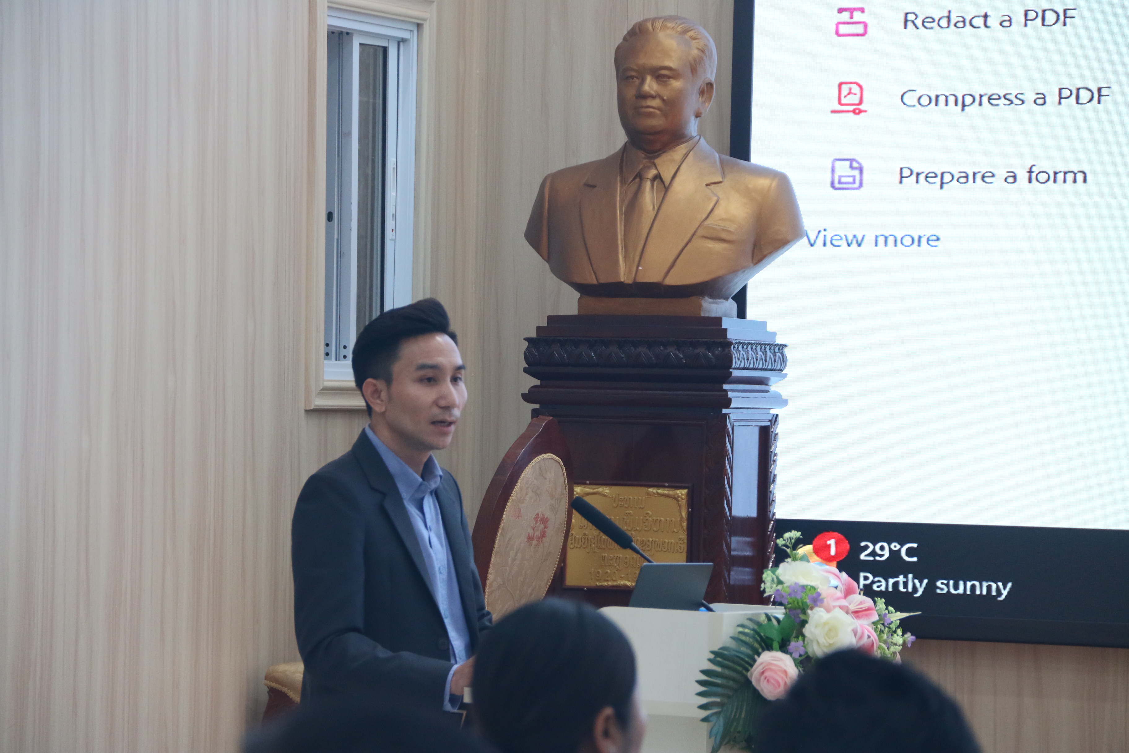 ກອງປະຊຸມຝຶກອົບຮົມ ໄດ້ດໍາເນີນໄປເປັນເວລາ 01 ວັນຈຶ່ງຈະສໍາເລັດ.